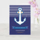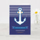 Esta tarjeta náutica tiene un aspecto elegante con el fondo azul marino y las rayas blancas y el ancla. Tarjeta marítima perfecta para personalizar con el nombre de la pareja. Les encantará esta tarjeta de felicitación personalizada por su 1er aniversario de bodas.
