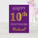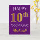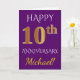 Tarjeta Aniversario de Bodas de Purpura y Oro Falso 10 + N