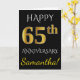 Tarjeta Aniversario de Bodas Negro, Baño de Oro 65 + Nombr