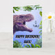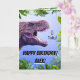 Tarjeta de cumpleaños de dinosaurios fotorealistas de alta calidad con follaje de jungla. Perfecto para los paleontólogos en ciernes y amantes de los dinosaurios, así como para los entusiastas prehistóricos. La edad ajustable y el texto del nombre hacen que esta tarjeta de cumpleaños sea adecuada para cualquier rango de edad.