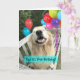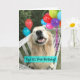 ¡Alguien está teniendo un cumpleaños! ¡Celebra con estilo con esta linda tarjeta de felicitación! El diseño cuenta con un sonriente perro recuperador de oro en un banco de un parque, rodeado de coloridos globos. El texto en la parte delantera dice: "¡Sí! ¡Es tu cumpleaños!" mientras el personalizable dentro del texto dice: "¡Celebremos! ¡Espero que tengas el mejor día!"