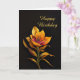 Esta tarjeta floral representa una flor de iris aislada en un fondo negro. Los contornos audaces y los colores apagados le dan a la obra una calidad única y estilizada.