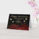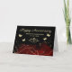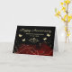 Elegante y elegante texto personalizado Tarjeta de aniversario feliz con salpicadura de tinta roja purpurina dorada fondo negro, tipografía de escritura moderna a mano, elemento de flecha de amor y hermosas mariposas. Una cálida y sincera tarjeta de saludo que es perfecta para celebrar una ocasión especial como un aniversario. Personalice este diseño cambiando el mensaje y su nombre, convirtiéndolo en un regalo único para su familia o amigos.
