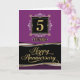 Esta es una tarjeta de 5º aniversario de Empleado formal, pero decorativamente elegante. El diseño se ha creado dentro de un esquema de color ciruela y presenta el número 5, centro superior, en un cuadro de texto decorativo. El número está escrito en un tipo de letra elegantemente curvado con un efecto de Relieve metalizado de oro creado digitalmente sobre un fondo negro. Debajo del número está la palabra 'AÑO', en un tipo de letra coincidente y superpuesto al número, y fijado en un fondo de jade oscuro. En la sección inferior del diseño, en un cuadro de texto con curvas suaves y con bordes múltiples, está el texto 'Feliz Aniversario', escrito en un tipo de letra con un estilo de escritura muy fluido, con cambios decorativos. Este texto también tiene un efecto de Relieve metalizado dorado, de creación digital, superpuesto y se coloca sobre un fondo negro. NOTA: El efecto Relieve metalizado oro en este diseño fue creado digitalmente. Tarjetas Natalie Kinnear Esta tarjeta también se puede comprar en mi tienda en línea con Greeting Card Universe que tiene socios de impresión tanto en Estados Unidos como en el Reino Unido: http://www.greetingcarduniverse.com/business/employee-relations/employee-anniversary/years-of-service-specific/employee-anniversary-5-years-1517252?gcu=47771017551