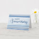 Celebra hitos de trabajo con nuestra tarjeta de aniversario de las franjas acuáticas. El frente presenta elegantes franjas pintadas a mano con acuarela y un guión de moda que dice "Feliz Aniversario". La tarjeta desprende un ambiente moderno y vibrante, que complementa perfectamente la alegre ocasión. El mensaje interno es simple pero sincero, expresando sus cálidos deseos de éxito y felicidad. Ideal para reconocer la dedicación de un valioso miembro del equipo. Compra esta tarjeta para expresar agradecimiento y felicitaciones por su aniversario de trabajo.