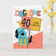 Esta es una divertida y colorida tarjeta de 40 años de empleados con un cómico ilustracion de perros. El perro está usando enormes gafas y tiene un cartel con él en el que se puede leer: '¡40 AÑOS YA!', encima del cual está el texto: DOGGONE que está escrito en una fuente ilustrada y colorida. Obra de arte original de Dog and Alphabet de Solmiri Art Card Design de Natalie Kinnear