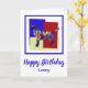 Labrador Recuperador de silueta de perro mariposa abstracto sobre rectángulos brillantes rojo, azul y amarillo. Un mensaje de cumpleaños divertido en la parte delantera de la tarjeta junto con "Espero que tu cumpleaños sea como tú. PAWESOME" puede cambiarse a lo que quieras.