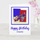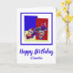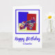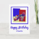 Resumen de mariposa de la silueta de perro español Cocker sobre rectángulos brillantes de color rojo, azul y amarillo. Un mensaje de cumpleaños divertido en la parte delantera de la tarjeta junto con "Espero que tu cumpleaños sea como tú. PAWESOME" puede cambiarse a lo que quieras.