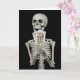 Esqueleto sosteniendo a un rey y una reina de corazones jugando cartas con dedos bonitos para el aniversario del boda.