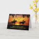 Una muy linda tarjeta de aniversario feliz para tu maravilloso hijo e hija en la ley. Una linda pareja occidental de vaqueros y vaqueros montados a caballo en el sendero con pájaros en formación cardíaca y un maravilloso mensaje divertido en el interior.