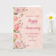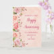 Feliz aniversario de boda para el nieto y su esposa con elegantes rosas de acuarela rosada y vegetación primaveral, con un falso patrón de oro rosa.