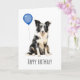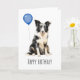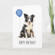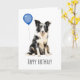 Adorable tarjeta de cumpleaños con un hermoso Pastor Australiano blanco y negro. Seguramente traerá una sonrisa a la cara de cualquier amante de los perros australianos.