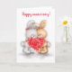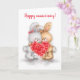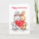 Tarjeta Aniversario feliz, pareja de conejos con corazón