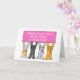 Cuatro gatos personalizados con cintas rosas mientras se paran con un gran cartel rectangular rosa que dice "Felicidades cuatro años libres de cáncer". La imagen se establece sobre un fondo blanco.