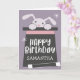 Dulce carta de cumpleaños mágica para un chica. Ilustracion de un lindo conejito que le saca la cabeza de un sombrero superior. También hay una varita mágica junto al gorra. Dentro del gorra dice "feliz cumpleaños, Samantha". Agregue aquí el nombre del destinatario. También hay un lindo mensaje en el interior que es editable. Los textos son fácilmente personalizables en línea.