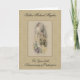 Esta es una hermosa tarjeta de aniversario del sacerdocio con una tarjeta santa vintage de recuerdo con un sacerdote ofreciendo la Misa en la Consagración en el altar y Jesús colocando una corona de espinas en su cabeza. El fondo es de diseño de damasco dorado. Todas las fuentes y textos pueden ser modificados.