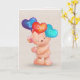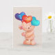 Oso de peluche lindo con un ramo de globo cardíaco de I Love You sobre un suave fondo burlap.