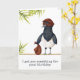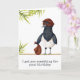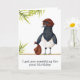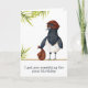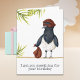 Graciosa tarjeta de cumpleaños con un ilustracion de ladrón de urracas. La urraca tiene un gorra, una máscara y una bolsa llena de golosinas. El sentimiento dice "Te conseguí algo para tu cumpleaños" pero puedes personalizarlo con tu propio mensaje. Ilustrado y diseñado por Patricia Álvarez.