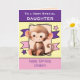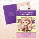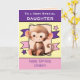 ¡Trae una sonrisa a su día especial con esta adorable tarjeta de cumpleaños con un mono descarado! Perfecto para decir "A una hija muy especial" (o cambiar el texto para que coincida con tu ser querido), este lindo diseño hace que los cumpleaños sean extra divertidos y memorables. El mono juguetón añade un toque de encanto, convirtiéndolo en un dulce sake para los niños, o para cualquier joven en el corazón. Personalice con sus propias palabras para que sea realmente único. ¡Una manera divertida y reconfortante de celebrar su gran día! Rosa / Púrpura