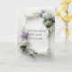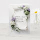 A wedding scroll made of white parchment featuring bouquets of hydrangeas and lilacs, accented with green ivy.