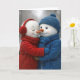 Tarjeta Anniversary Snowman Couple in Snowflakes