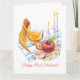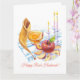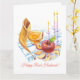 Tarjeta de saludo de Rosh Hashaná por la artista Sveta Mikhalevich. Shofar musical tradicional hecho de cuerno, miel y manzana.