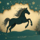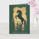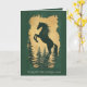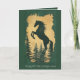 Majestuosa silueta forestal de un caballo encabritado con tonos dorados cálidos, diseñada para el Año del Caballo 2026. Un elegante saludo de Año Nuevo para amantes de la naturaleza y regalos ecuestres. Diseño en blanco con campos editables dentro para tu mensaje, nombre, ciudad y año. Tarjeta