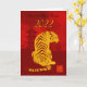 Tigre de Año Nuevo chino 2022, con varios elementos chinos, y un tigre súper lindo mirando a los lados, En su espalda lleva a Fu boca abajo (fu: significa "fortuna" o "buena suerte" boca abajo para dejar que la suerte entre directamente a las casas de la gente).