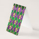 joyas, fondo del Mardi Gras de rhombus violeta y verde, lirios dorados decorados.