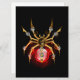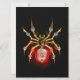 Araña mecánica, de vapor punk con oro, engranajes de latón y una lámpara de vidrio roja sobre un fondo negro. Estilo Steampunk.