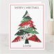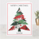 Presenta un árbol de Navidad de collage en una paleta de colores rojo y verde. Personalice con un nombre en la parte delantera, su propio mensaje en el interior y su nombre en la sección "de".