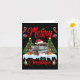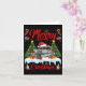 Tarjeta Árbol de Navidad iluminando Santa Hat Pontoon Bote