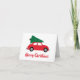 Con el pequeño coche rojo trayendo a casa el árbol de Navidad, estas adorables tarjetas retro son perfectas para esta temporada navideña. Puede cambiar fácilmente el color del fondo o del texto utilizando el editor.