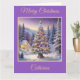 Tarjeta Árbol de Navidad morado y dorado en un bosque de i