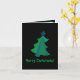 Feliz Navidad! Árbol verde azul moderno en tarjeta de saludo de vacaciones negro. Personalízalo con sus cálidos deseos y nombres.
