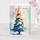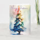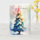 Tarjeta Árbol de Navidad pintado a mano con acuarela brill