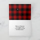 Pinar de Navidades blancos con campanas de oro, ciervo y un pájaro con pañuelo de invierno sobre leñador rojo y negro arado para Feliz Navidad y feliz año nuevo. El texto es editable.