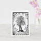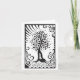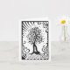 Dibujo de tinta inspirado en litografías del árbol de la vida. Imagen en una tarjeta de nota con interior en blanco.