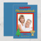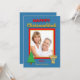 Esta tarjeta de felicitación plana de Chrismukkah tiene un toque nostálgico. Tu foto es el centro de atención en un marco dorado y rojo. Las palabras, "Feliz Chrismukkah" aparecen en la parte superior con un árbol y una menorá en la parte inferior. El diseño se puede personalizar con el año y el nombre de tu familia. Derechos de autor Henis House of Paper
