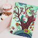 Una carta de cumpleaños pintada a mano con un árbol tropical con animales, osos koala y aves