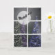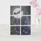 Tarjeta Árboles de Navidad y luna con Santa en la ventana