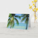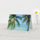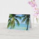 HAGA UNA VACACIONES MENTALES EN LA PLAYA. LA TARJETA CUENTA CON PALMERAS Y UN MAR TURQUESA HERMOSO. TEXTO DELANTERO: "ÁRBOLES DE PALMA, ROPA DE OCÉANO. ¿VIAJE A LA PLAYA? ¡SÍ, POR FAVOR!" EN EL INTERIOR HAY "DIRECTRICES" PARA LLEVAR A CABO UNA VACACIONES MENTALES (EN FUNDA, NO SE PUEDE HACER LO VERDADERO). TODO EL TEXTO ES PERSONALIZABLE.