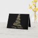 Tarjeta de bienvenida moderna de Navidades negros y dorados con un elegante árbol de Navidad dorado con fondo negro y texto dorado.