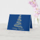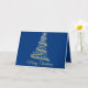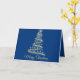 Tarjeta de bienvenida moderna de Navidades azules y dorados con elegante árbol de Navidad dorado con fondo negro con texto dorado.