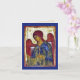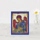 Arcángel Gabriel Navidades cristianos de escena religiosa tarjeta de saludo. El Angel Gabriel, que anunció el nacimiento de Cristo ante María, mostrado con alas rojas crimnales, pintado en colores ricos y vibrantes. Las obras de arte se remontan al periodo bizantino de la historia cristiana temprana. Una perfecta tarjeta cristiana de bienvenida impregnada de fe.