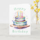 Disfrute de sus sentidos con nuestra exquisita tarjeta Happy Birthday que incluye un pastel de arcoiris acuático. Envíe cálidos deseos y alegría a sus seres queridos y amigos en su día especial. Personalizar el título del evento en la parte delantera.
