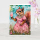Tarjeta Ardilla con una vestimenta rosa y una bebida