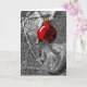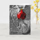 Dibujo a pluma y tinta de una ardilla subiendo en un árbol de Navidad. La ardilla se sorprende al ver su propio reflejo en un adorno. La bola roja brillante resalta contra el dibujo en blanco y negro, enfatizando lo extraño que debe ser para la ardilla verse a sí misma.