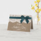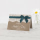 Tarjeta Arpillera, Encaje y Lazo Azul Turquesa Feliz Día d