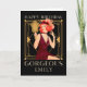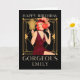 Envíe saludos de cumpleaños de una manera veinte con este diseño de estilo Art Deco con un ilustracion de una dama de cabello rojo con un vestido de burdeos sosteniendo un espejo y una tipografía feliz cumpleaños espléndida. Personaliza fácilmente el nombre del destinatario en la parte inferior y el mensaje en el interior. El fondo negro puede cambiarse a otro color si así lo desea a través de la opción Click to Personalizar Further (Hacer clic en más ).